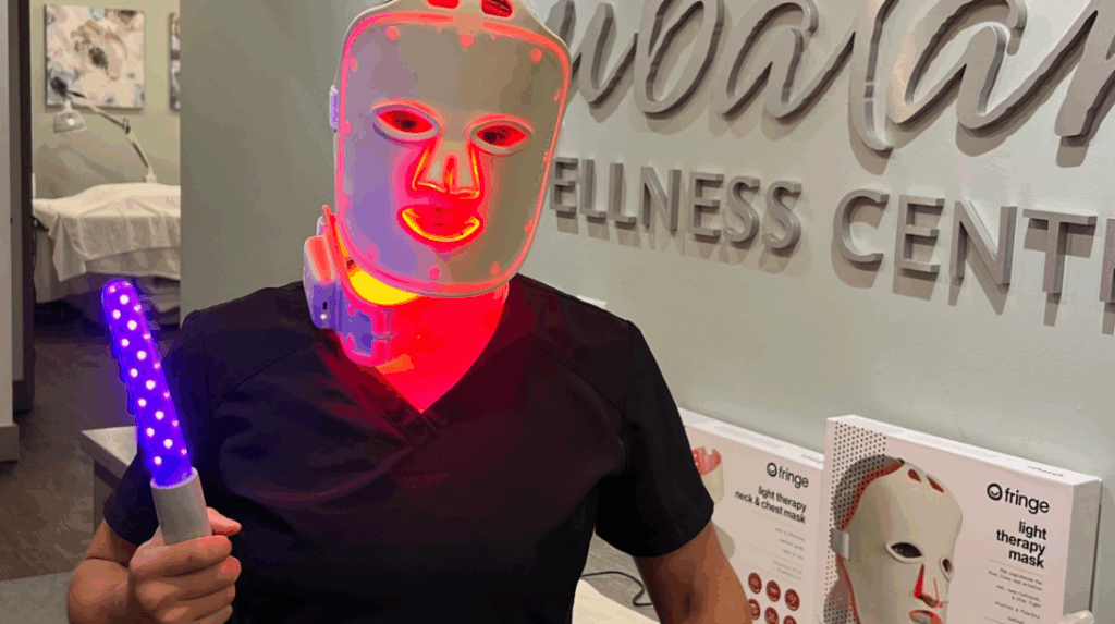 Leave a Google review for Acubalance and schedule your complimentary Fringe Mask Light Therapy Add-on
